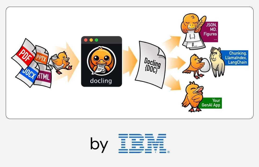 IBM Docling is an open-source toolkit that converts complex documents like PDFs, Word files, and slide decks into structured, machine-readable formats such as JSON and Markdown, making them ready for use with generative AI models and retrieval-augmented generation workflows.